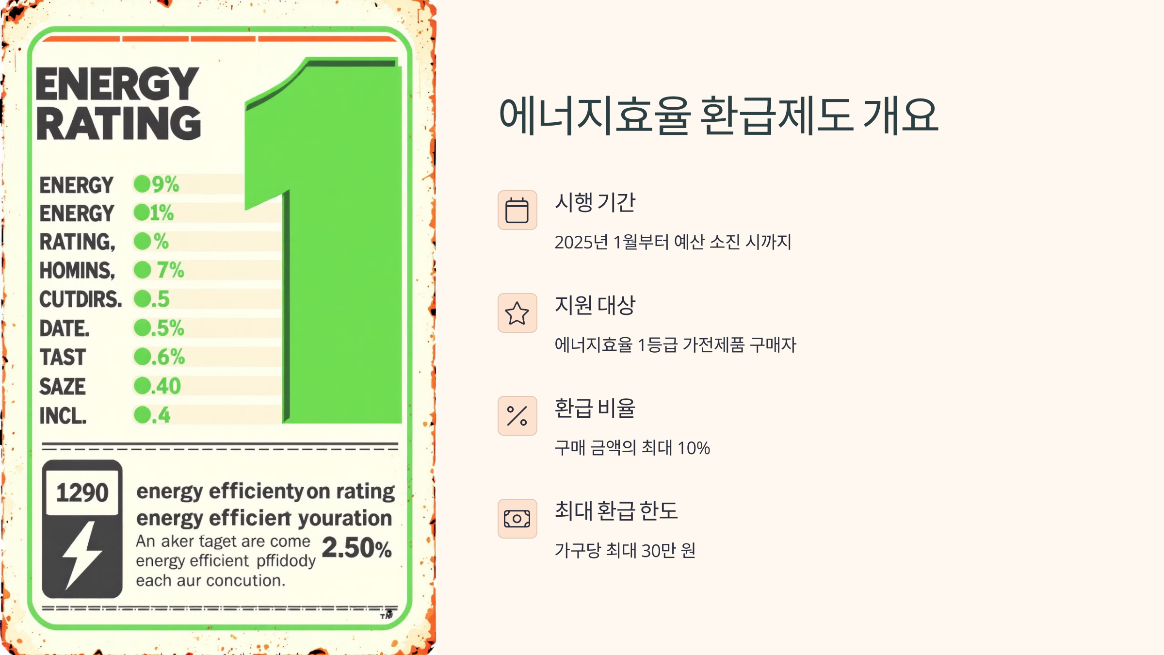정부는 에너지 절약과 탄소 배출 감소를 위해 매년 에너지효율이 높은 가전제품을 구매하는 소비자에게 일부 비용을 환급해 주는 제도를 운영하고 있어요. 2025년에도 이 정책이 확대 시행될 예정이에요.