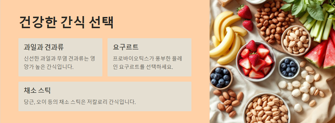 건강한 간식을 선택한다면 오히려 긍정적입니다. 예: 견과류, 과일