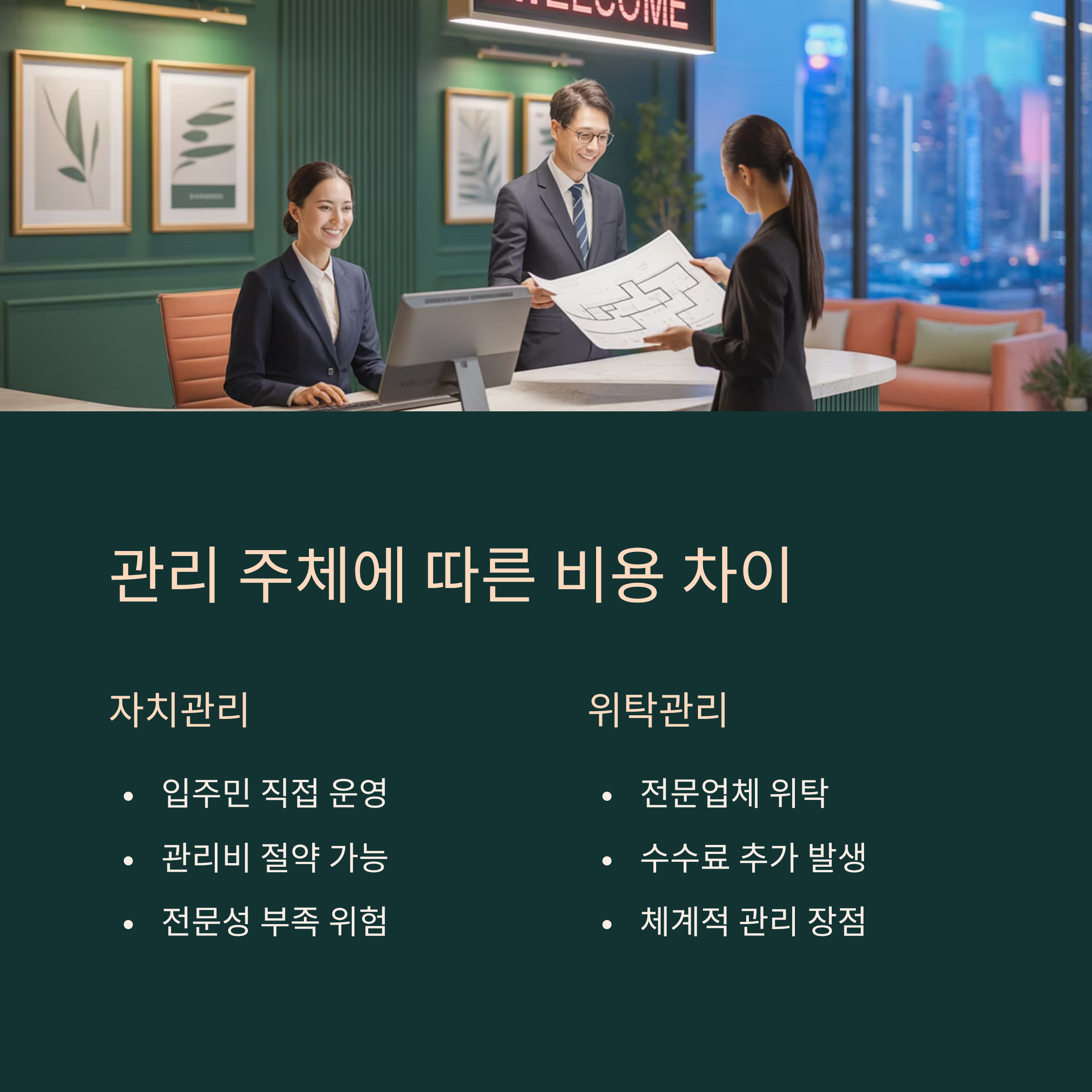 | 구분 | 운영 주체 | 장점 | 단점 | 관리비 영향 |