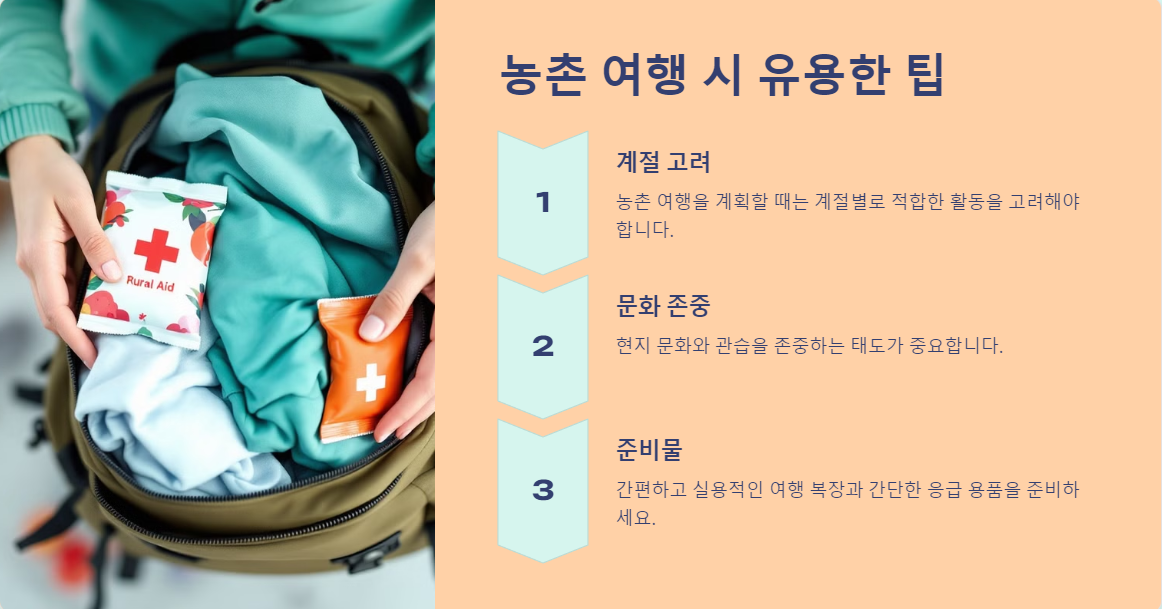 농촌 여행을 계획할 때는 계절별로 적합한 활동을 고려해야 합니다.