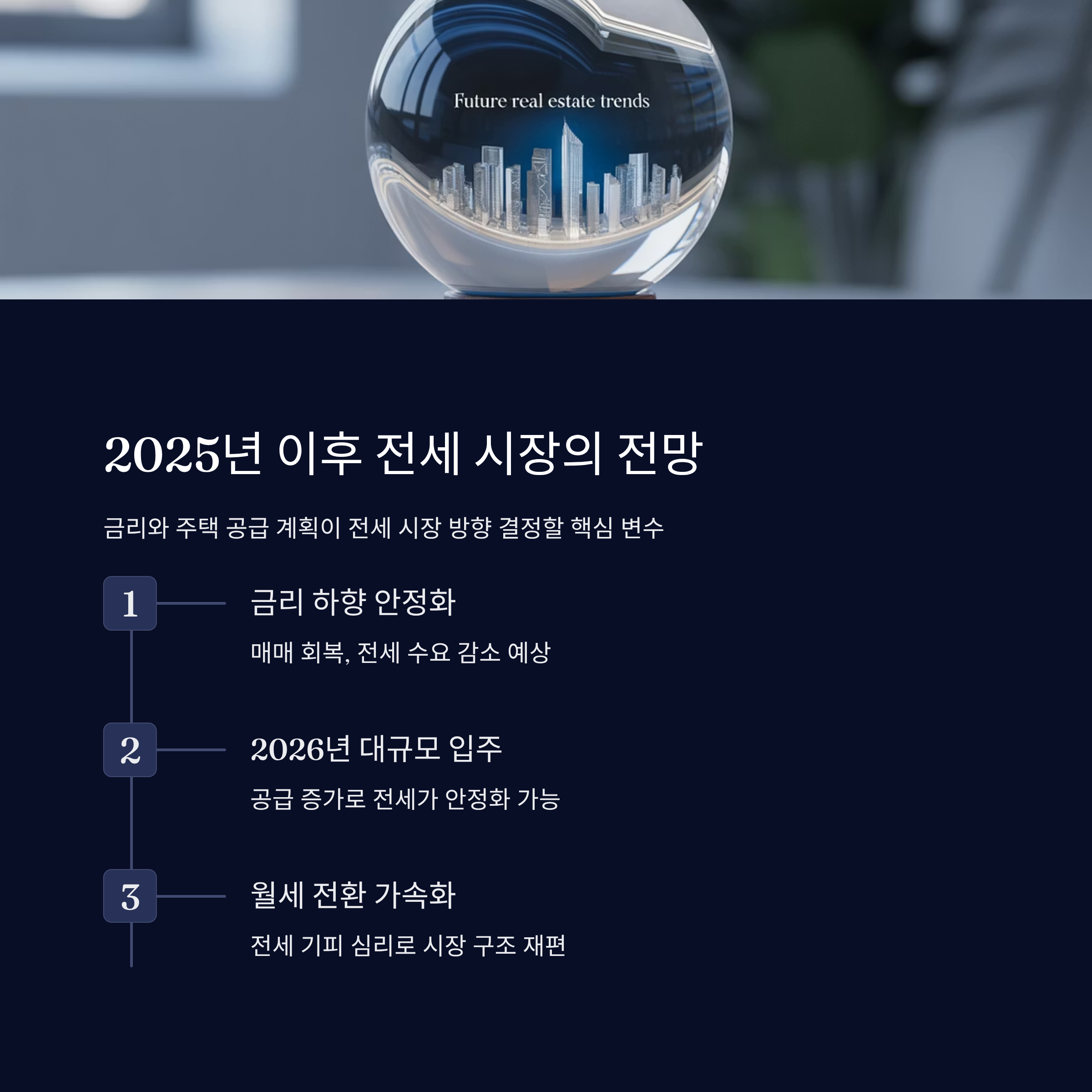 전문가들은 향후 금리와 주택 공급 계획이 전세 시장의 방향을 결정할 핵심 변수라고 말해요. 금리가 하향 안정세로 접어들 경우, 전세보다는 월세나 매매 전환이 늘어날 수 있고, 반대로 금리가 오르면 다시 전세 선호 현상이 강해질 수 있어요.