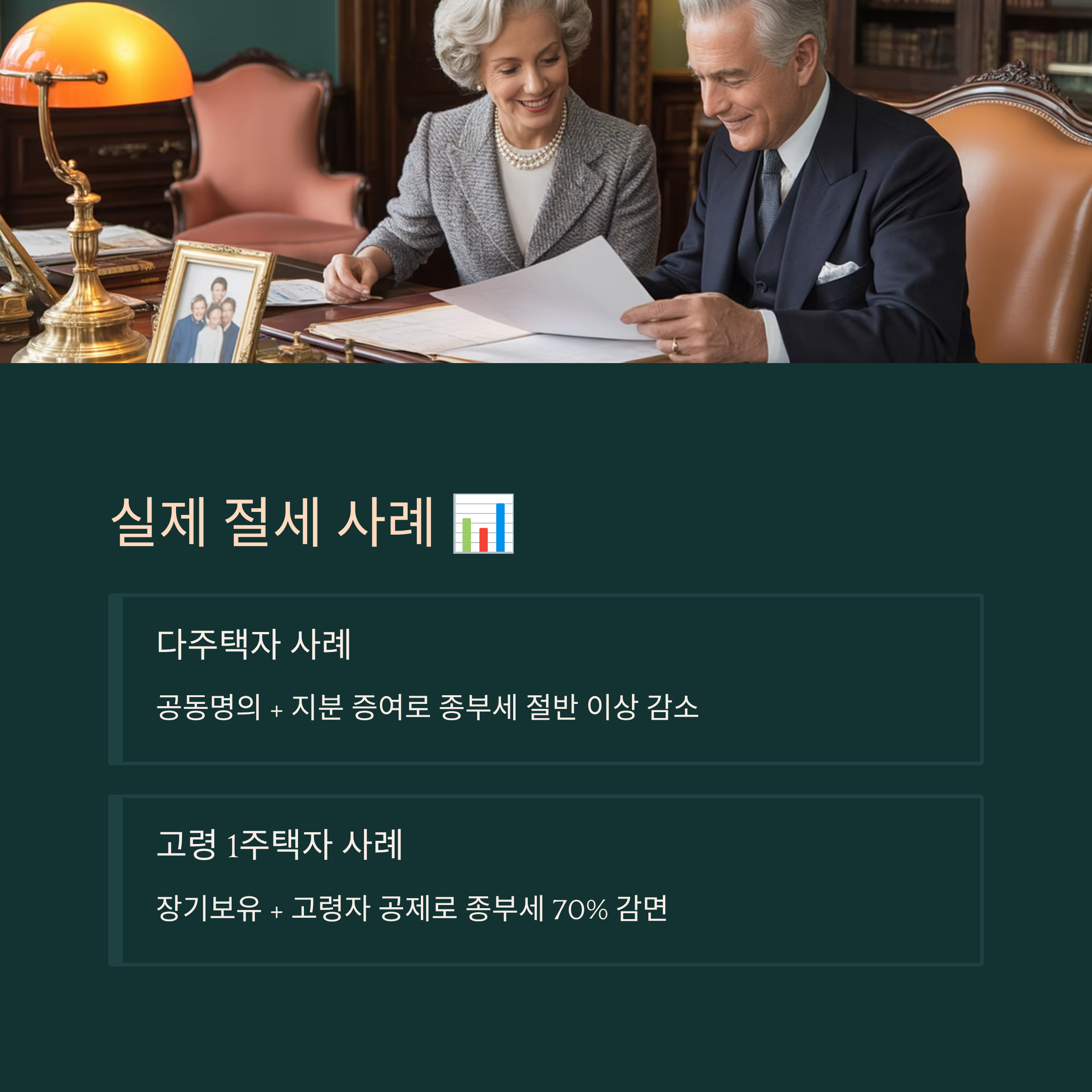 | 다주택자 | 공동명의 + 지분 증여 | 종부세 절반 이상 감소 |