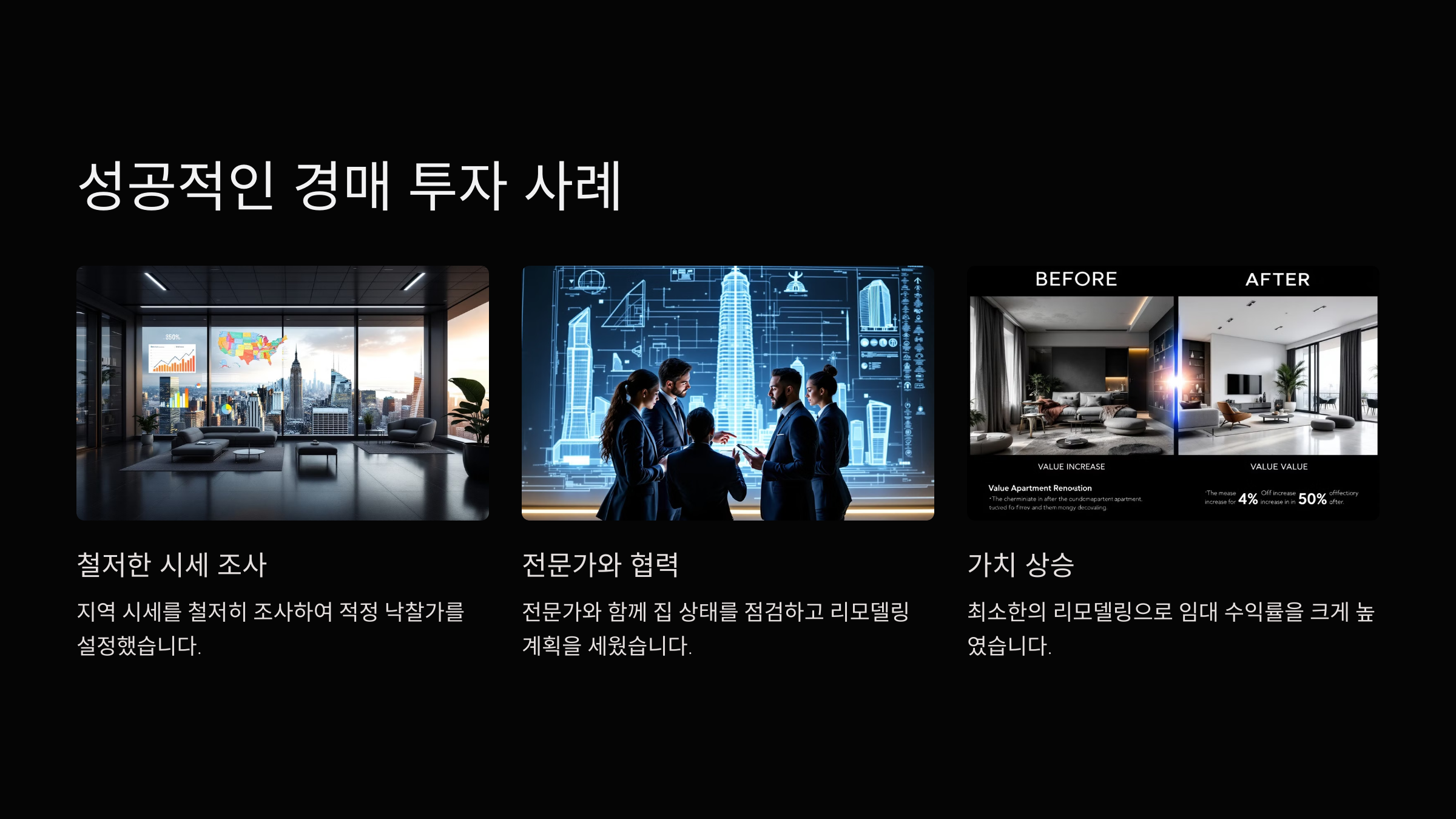 낙찰 후에는 전문가와 함께 집 상태를 점검하고 최소한의 리모델링으로 가치를 높였어요. 이를 통해 아파트의 임대 수익률이 크게 상승했답니다. 김씨는 "사전 준비와 냉정한 판단이 성공의 열쇠"라고 말했어요.