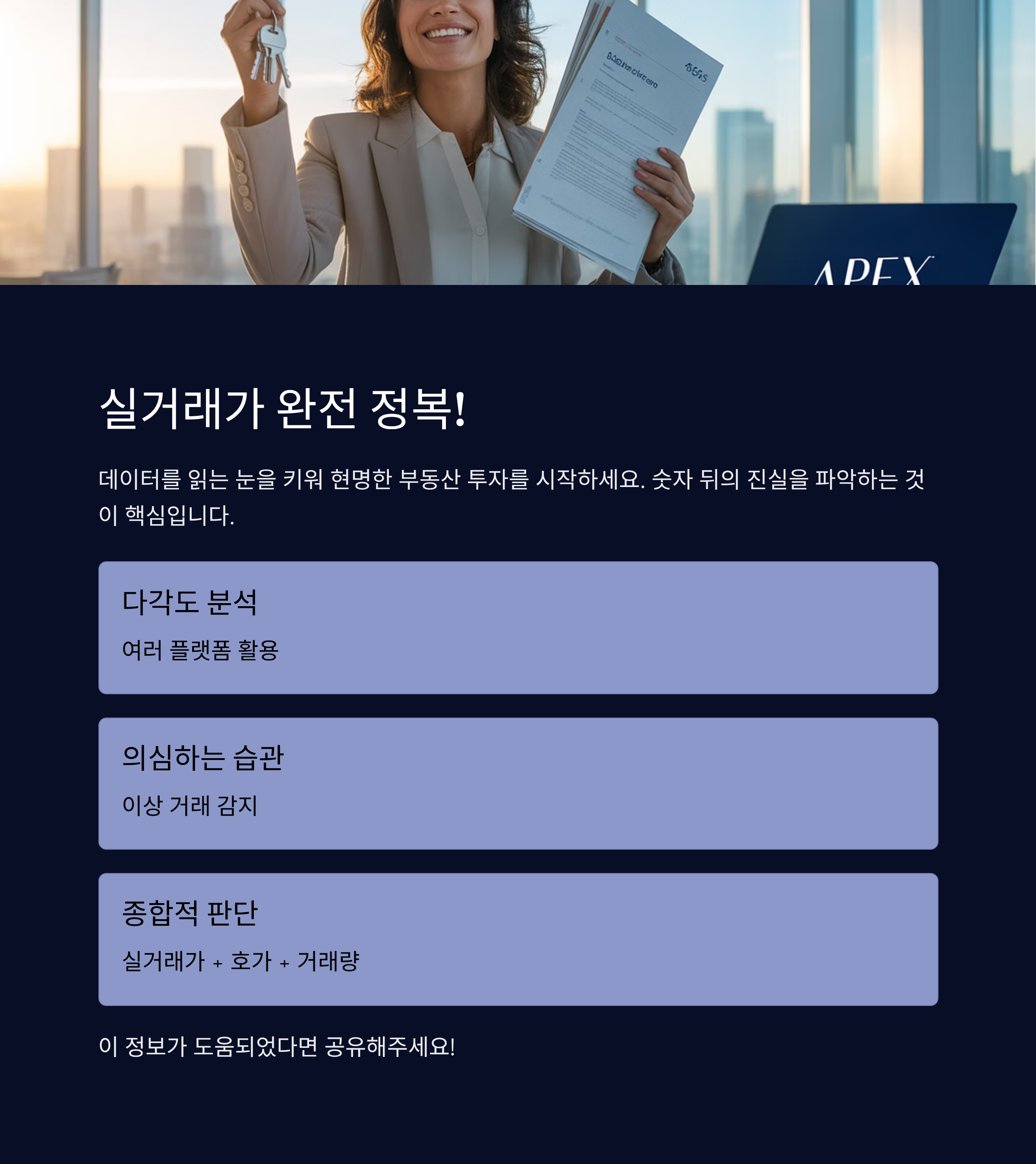 이처럼 실거래가를 읽을 땐 수동적인 태도보다 분석적인 시각이 필요해요. 데이터를 받아들이는 게 아니라, 해석해서 ‘내 재산’을 지키는 감각을 키우는 거죠. 그게 결국 부동산 시장에서 흔들리지 않는 가장 큰 무기예요 💪