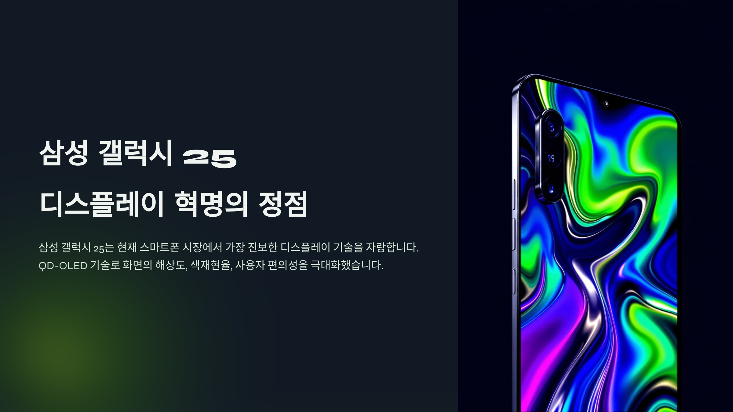 저는 갤럭시 25의 디스플레이가 단순히 고성능을 넘어 실제 사용자 경험을 바꿀 만큼 혁신적이라고 느껴졌어요. 삼성의 최신 QD-OLED 기술은 뛰어난 명암비와 색정확도를 제공하며, 이로 인해 영화 감상, 게이밍, 그리고 실외에서의 가독성까지 모든 상황에서 탁월한 품질을 보여준답니다.