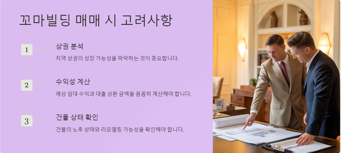 매매 대상 건물의 노후 상태를 철저히 점검해야 합니다. 전기, 배관, 외벽 등 주요 시설이 얼마나 유지보수가 필요한지 확인하고, 리모델링 가능성을 검토하는 것이 중요합니다. 이는 장기적인 건물 가치를 보존하는 데 필수적입니다.