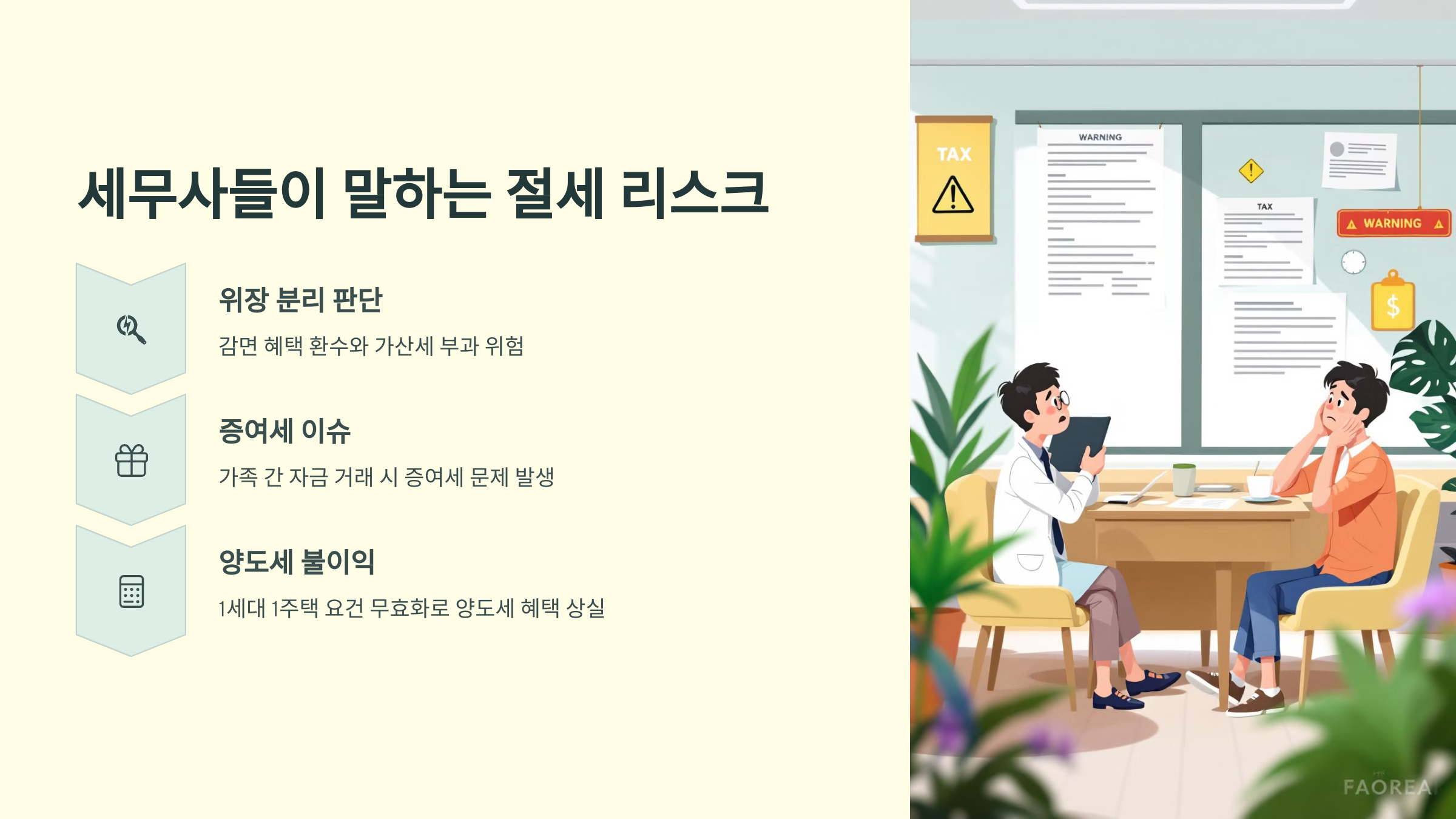 하지만 무턱대고 세대만 나눈다고 다 절세가 되는 건 아니에요. 오히려 국세청에서 ‘편법’으로 간주하는 경우도 많아요.