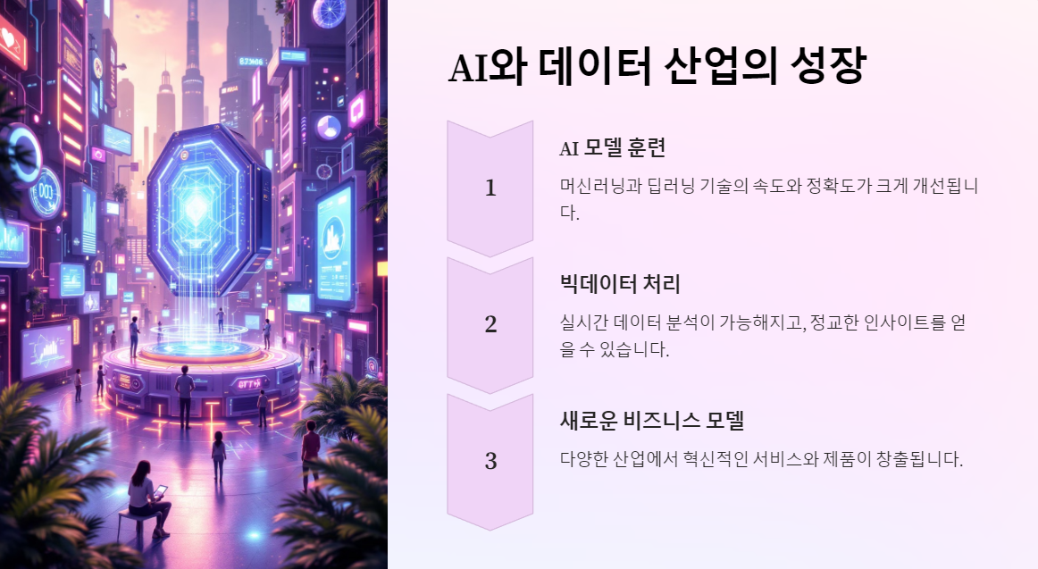 A7. AI 모델 훈련 속도가 획기적으로 빨라지고, 복잡한 알고리즘 최적화가 가능해질 거예요. 이는 자율주행, 자연어 처리, 의료 AI 등에서 큰 진전을 이끌어낼 수 있어요.