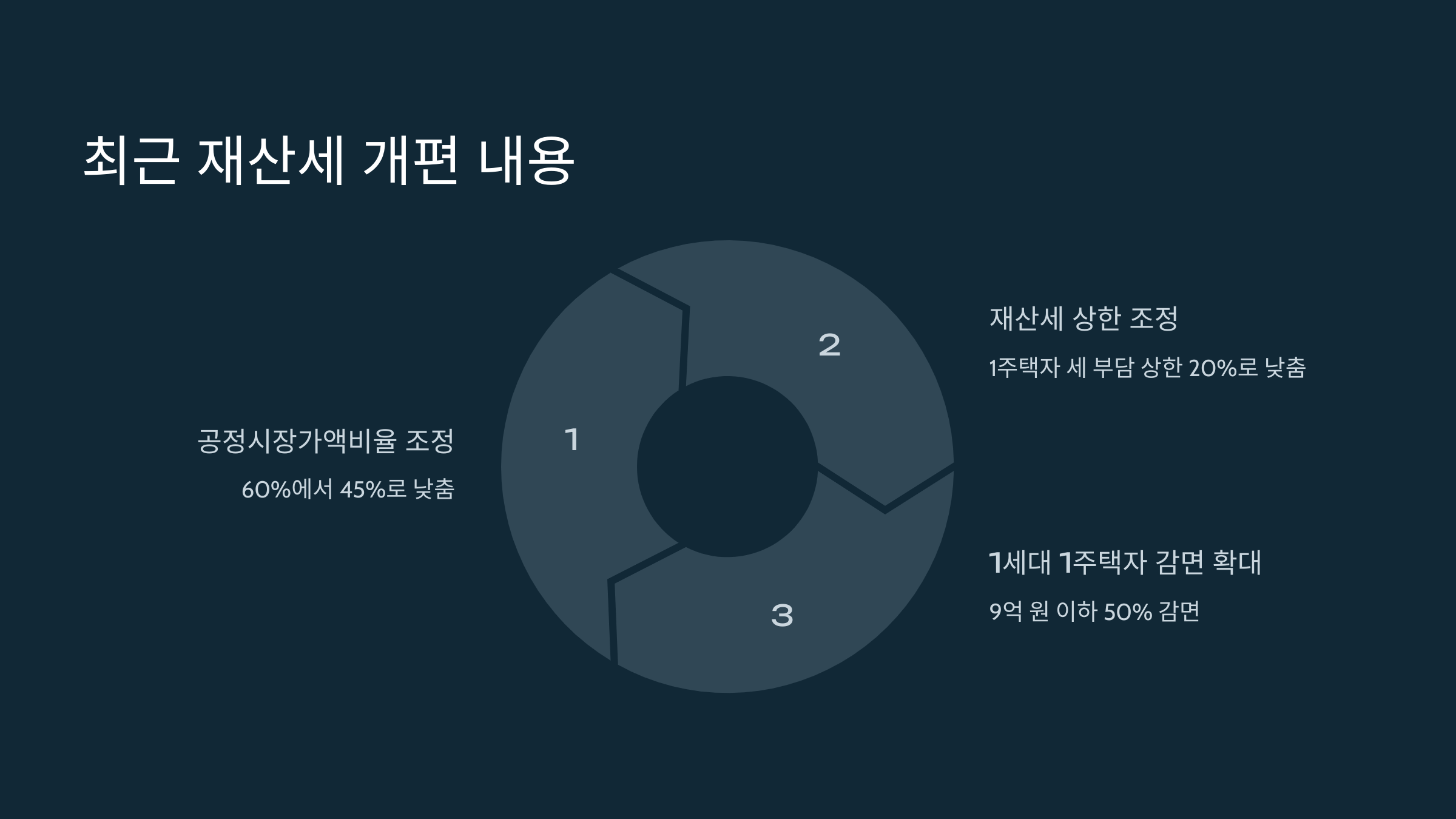 정부는 재산세 부담을 완화하기 위해 다양한 개편안을 내놓고 있어요. 최근 발표된 주요 개편 내용을 살펴볼게요.