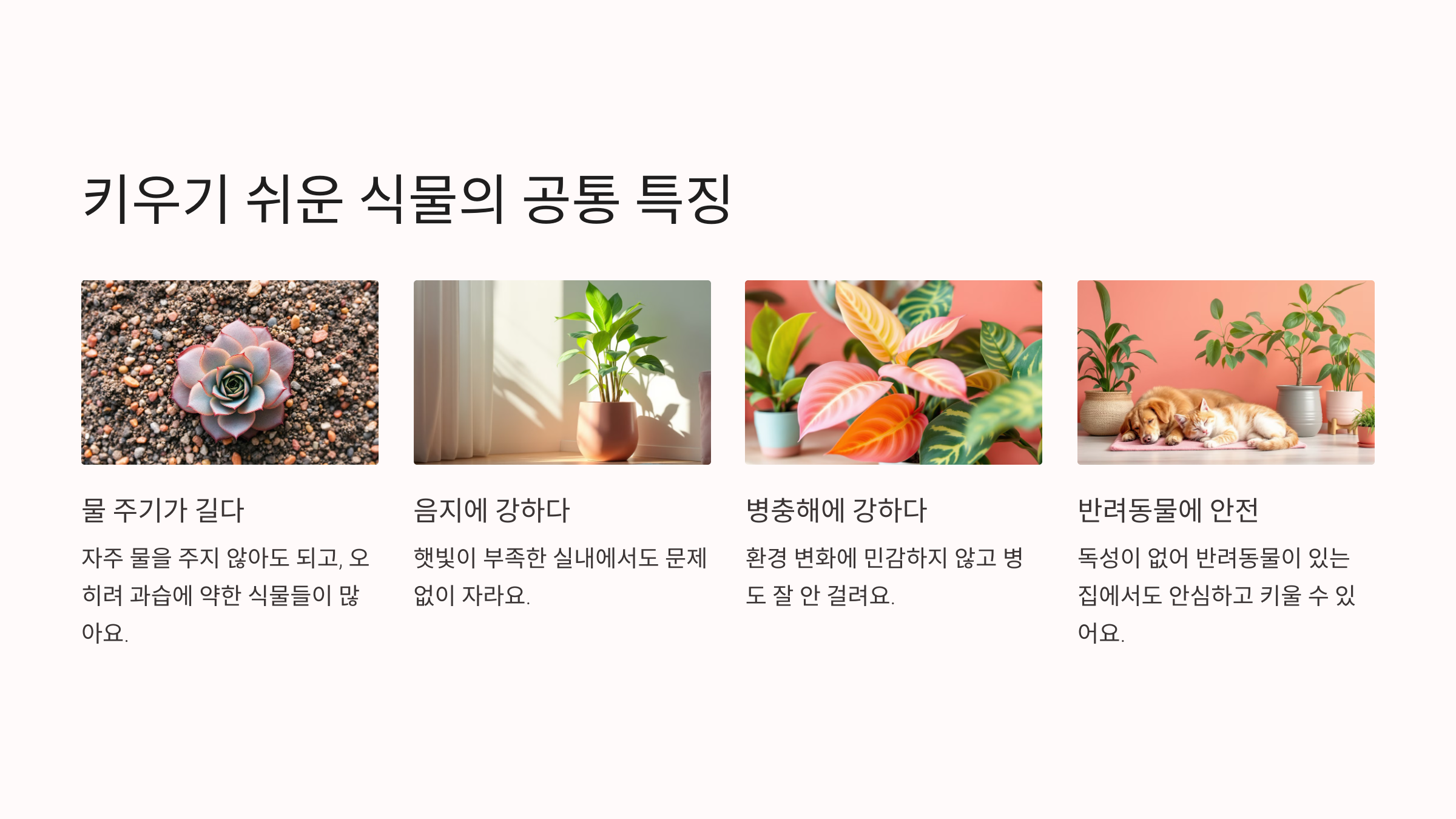 하지만 어떤 식물이 초보자에게 잘 맞을지 고민된다면, 오늘 이 가이드를 참고해 보세요. 물 자주 안 줘도 잘 자라고, 햇빛 없어도 끄떡없는 식물들만 쏙쏙 골라 알려드릴게요. 식물 키우는 재미, 지금부터 같이 시작해요! 🌿