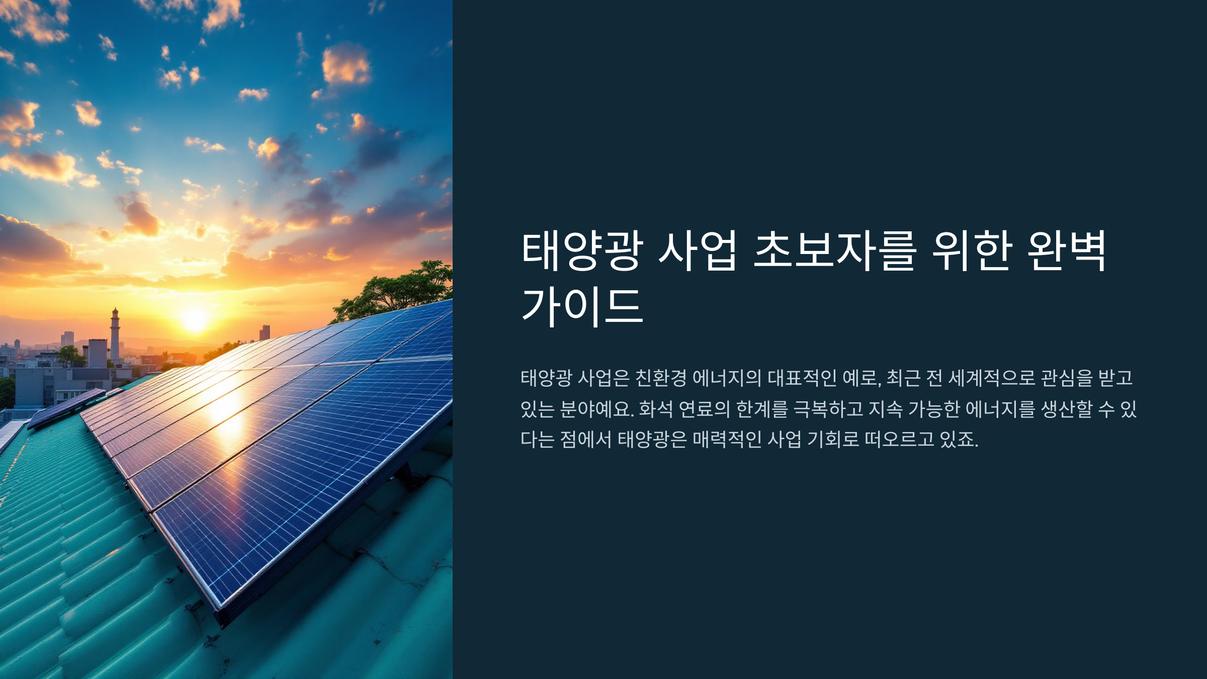 태양광 사업은 태양광 발전 기술을 활용해 전력을 생산하고 이를 판매하거나 소비하는 사업 모델이에요. 태양광 패널을 설치해 전기를 생산하고, 이 전기를 전력망에 공급하거나 자체적으로 사용해 에너지 비용을 절감할 수 있죠. 특히, 전 세계적으로 에너지 전환이 활발히 진행되면서 태양광 사업에 대한 관심이 크게 증가하고 있어요.