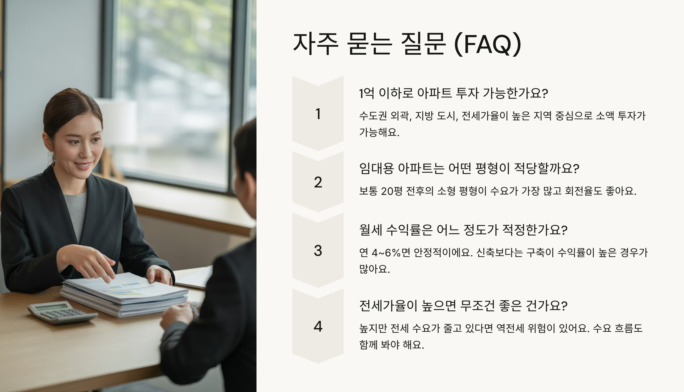 이제 아파트 투자에 대해 정말 많은 걸 알아봤죠. 마지막으로, 투자자들이 자주 궁금해하는 질문들을 정리해볼게요. 👇