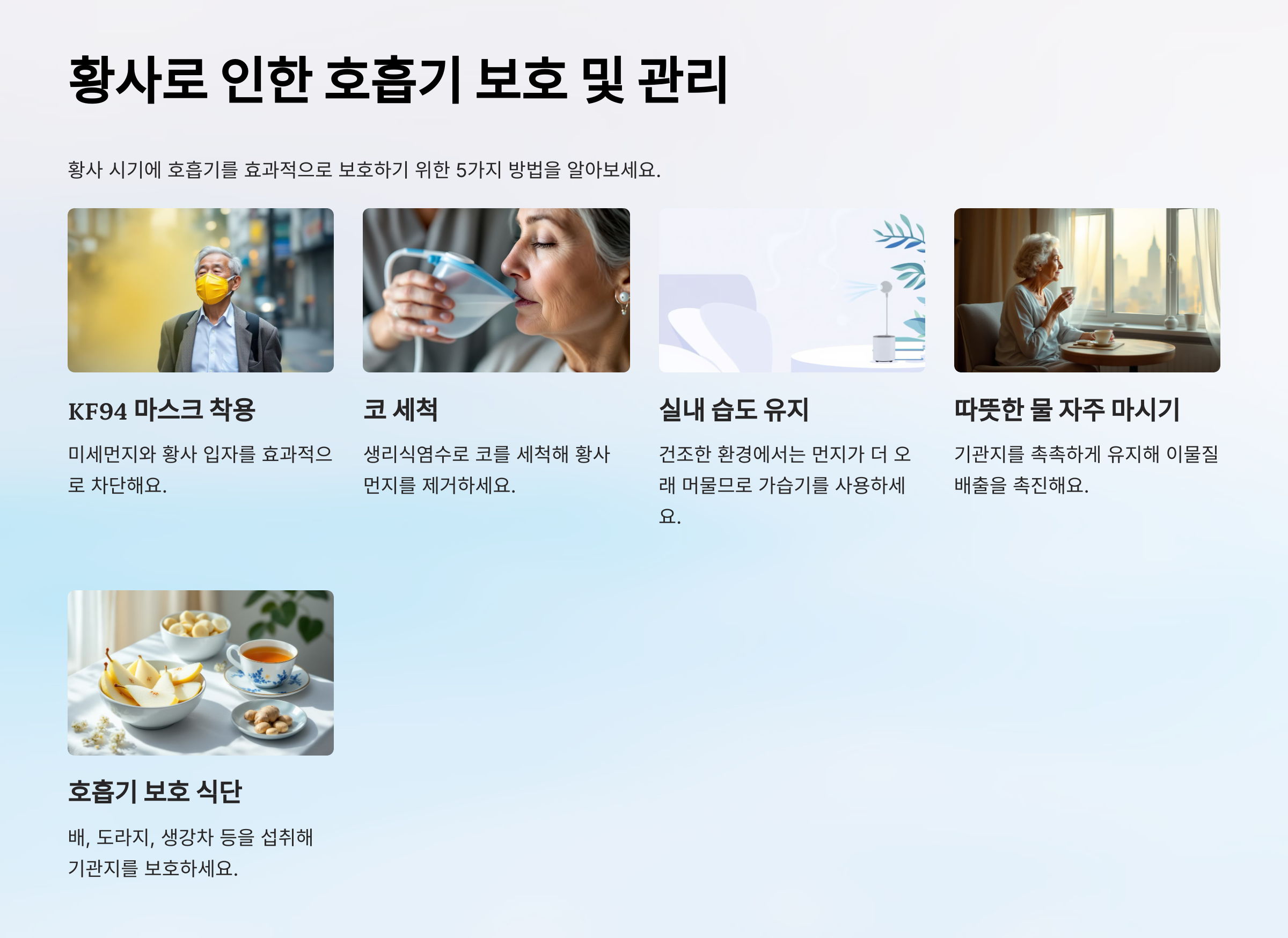 그럼 황사가 호흡기에 미치는 영향을 줄이는 방법도 알아볼까요? 🫁