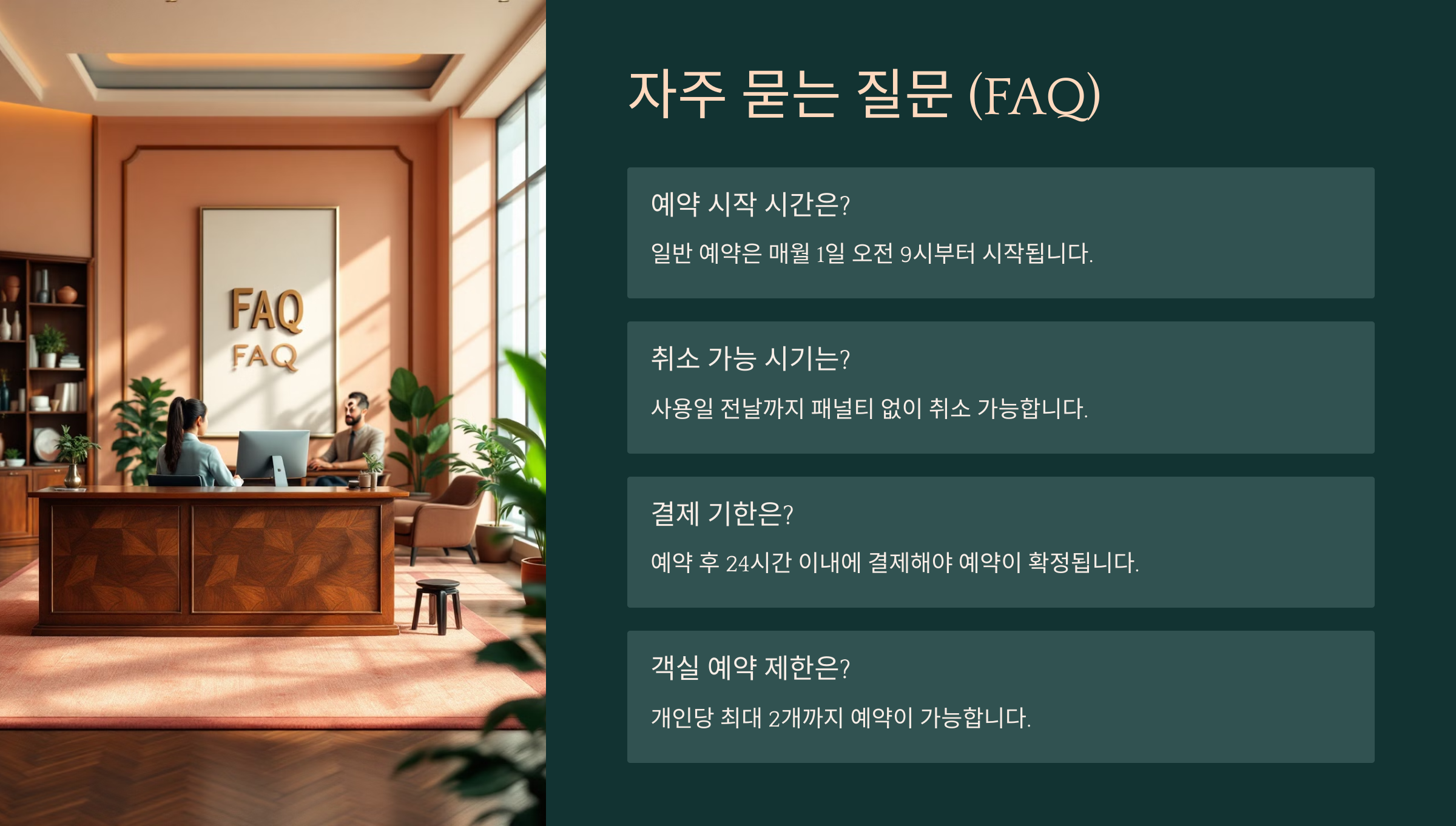- 📋 원하는 객실 미리 선택: 사전에 숙소와 날짜를 정해두세요.