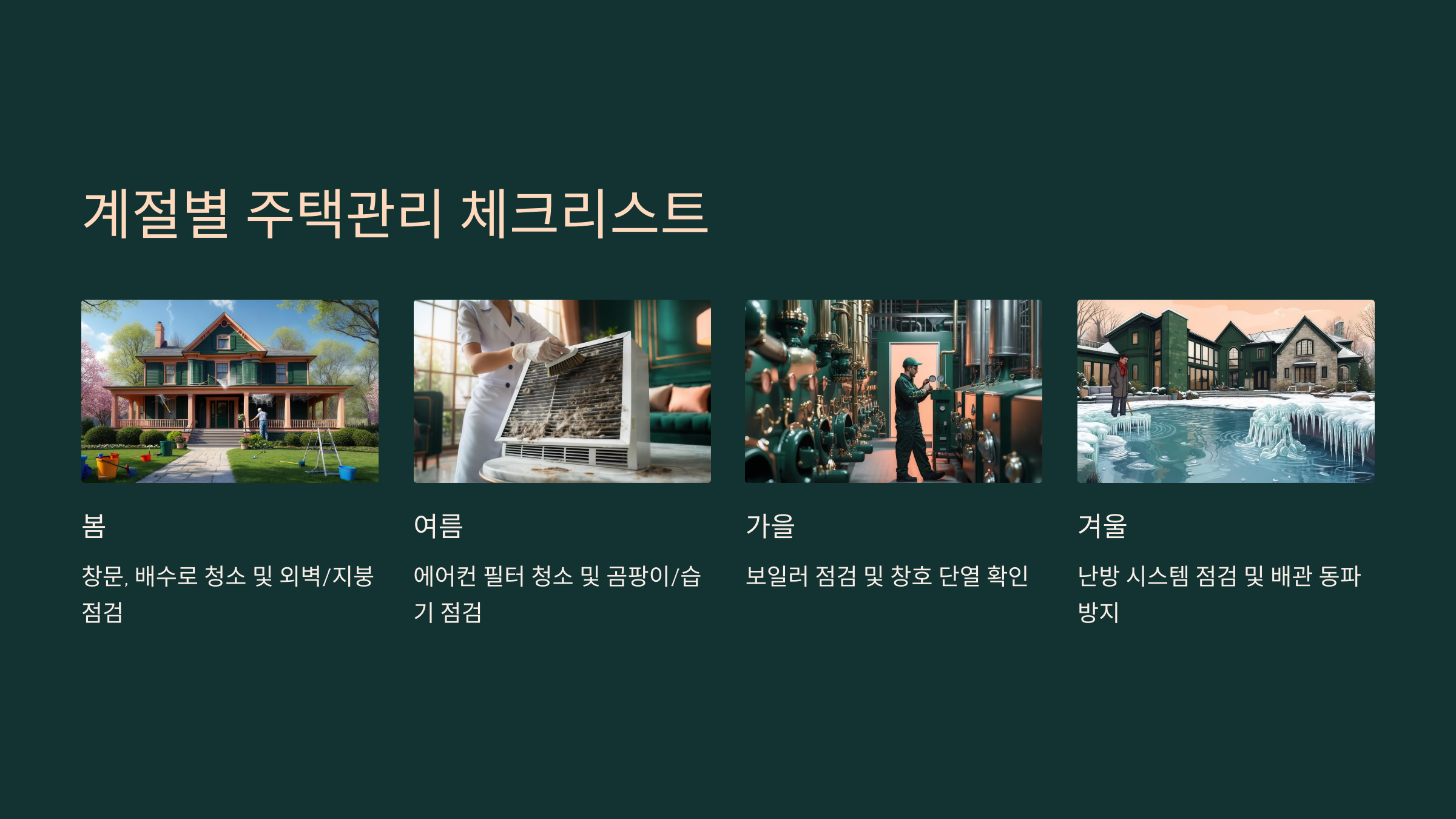 봄: 창문과 배수로 청소, 외벽과 지붕 점검