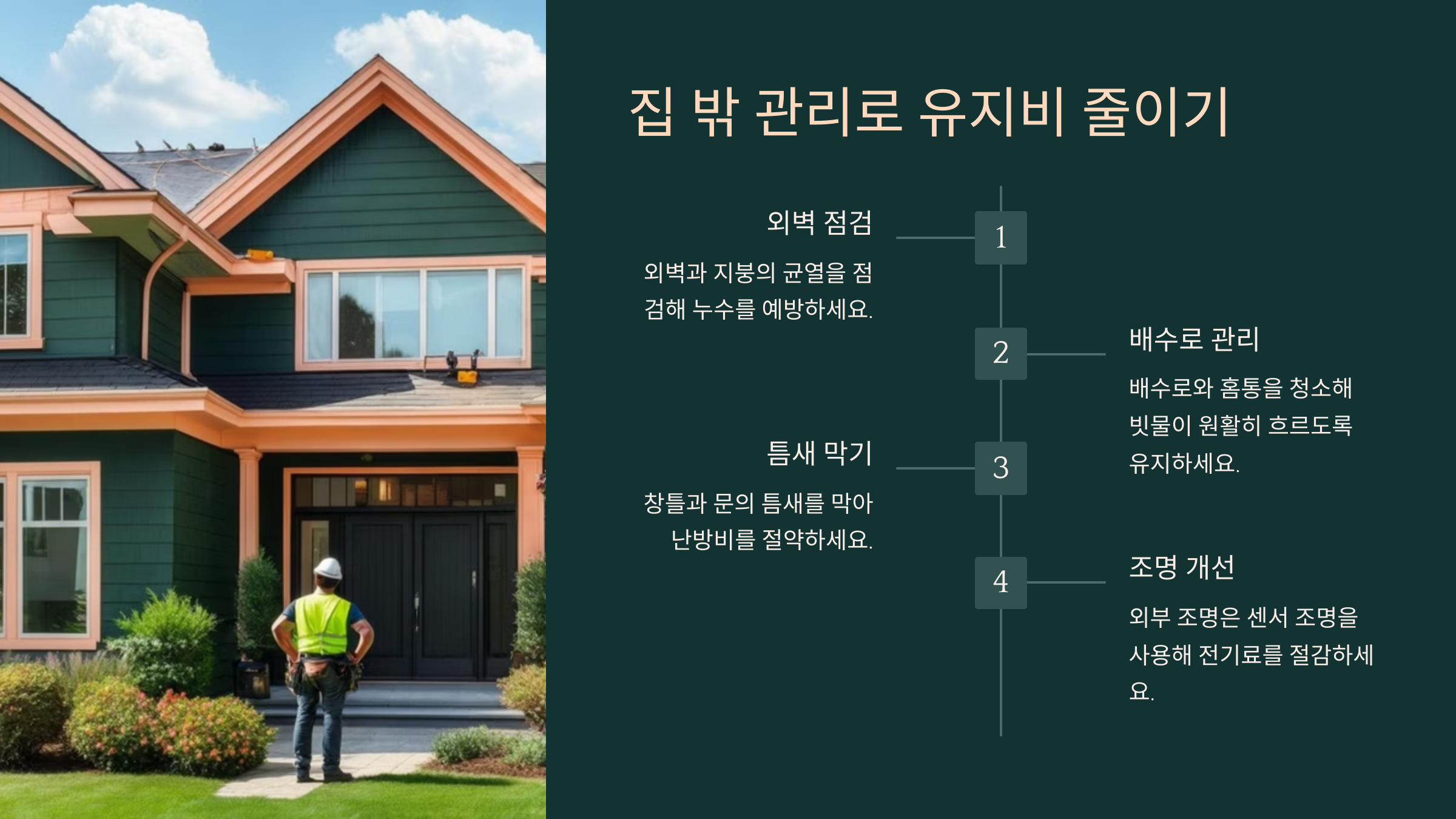 연 1회: 지붕, 외벽, 배수로 전문 점검 의뢰