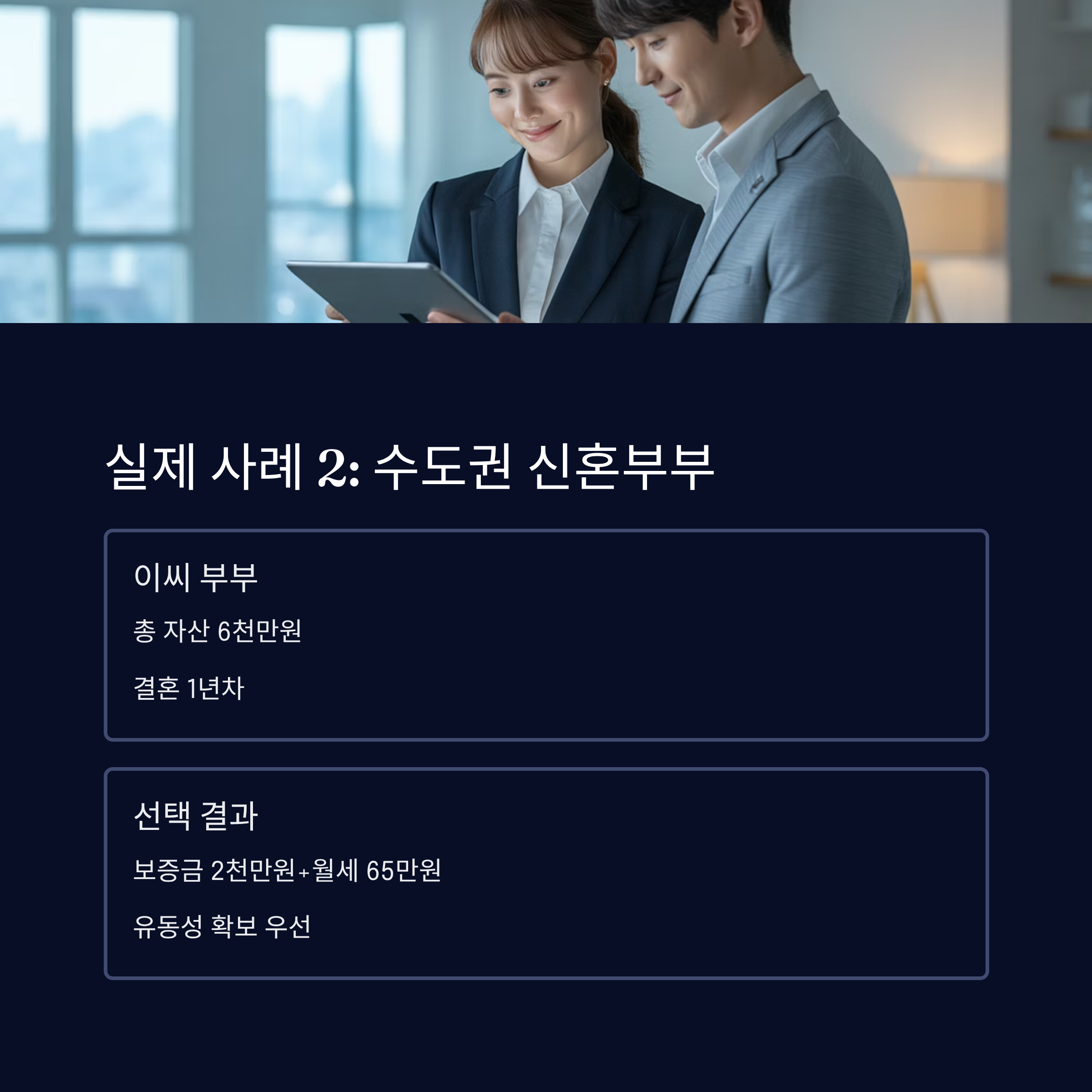 | 신혼부부, 대출 부담 있음 | 반전세/월세 | 자산 활용도 높음 |